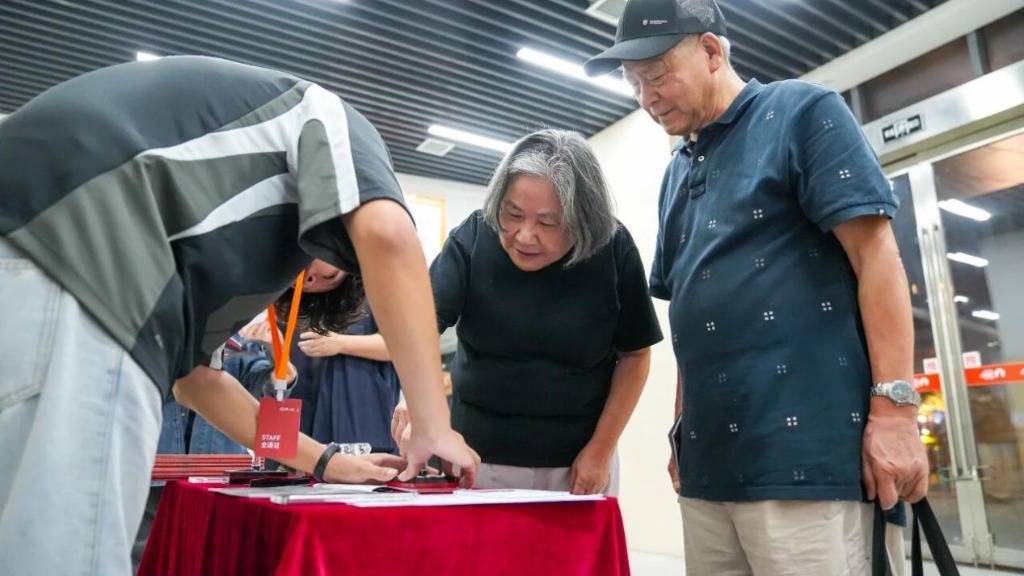 合肥戏迷正在剧场外盖章打卡。(罗浩宇摄)