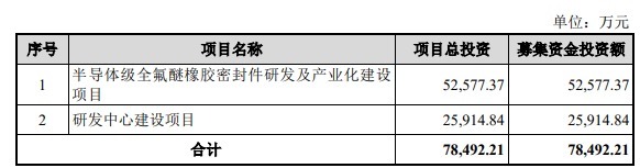 芯密科技本次公开发行的股份数量不超过1,727.5588万股,占发行后总股本的比例不低于25%。芯密科技原拟募集资金78,492.21万元,分别用于半导体级全氟醚橡胶密封件研发及产业化建设项目、研发中心建设项目。