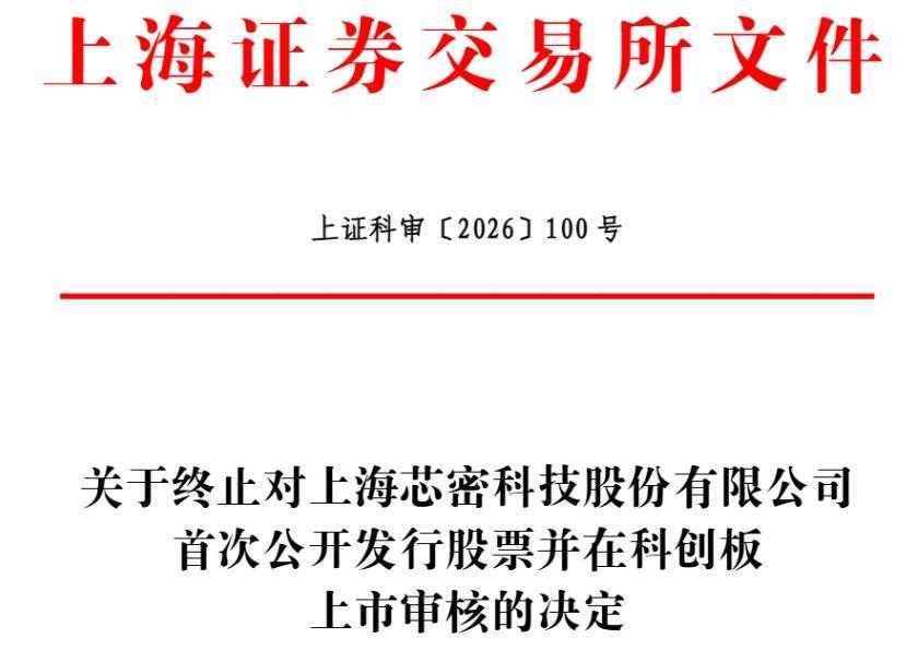 中国经济网北京4月1日讯 据上交所官网消息,上交所决定终止对上海芯密科技股份有限公司(简称:芯密科技)首次公开发行股票并在科创板上市审核的决定。