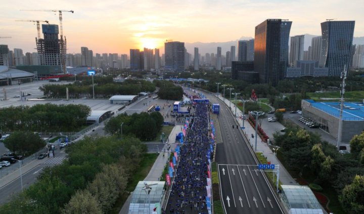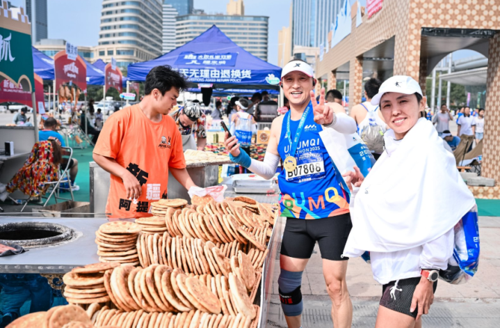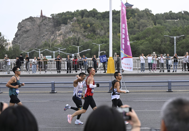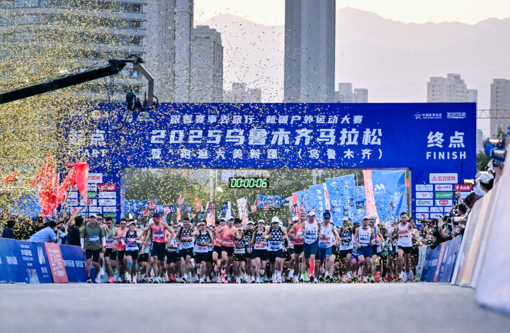 参赛选手途经乌鲁木齐红山。新华社记者 王菲 摄
