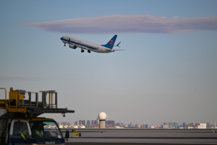 4月17日,由乌鲁木齐飞往广州的南方航空CZ6024航班在乌鲁木齐天山国际机场起飞。新华社记者 辛悦卫 摄