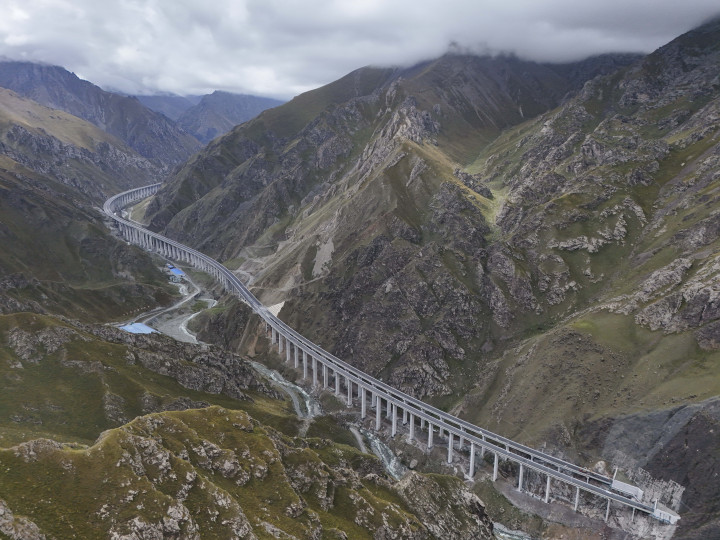 新疆乌尉高速公路穿越天山山脉(8月19日摄,无人机照片)。新华社记者 胡虎虎 摄