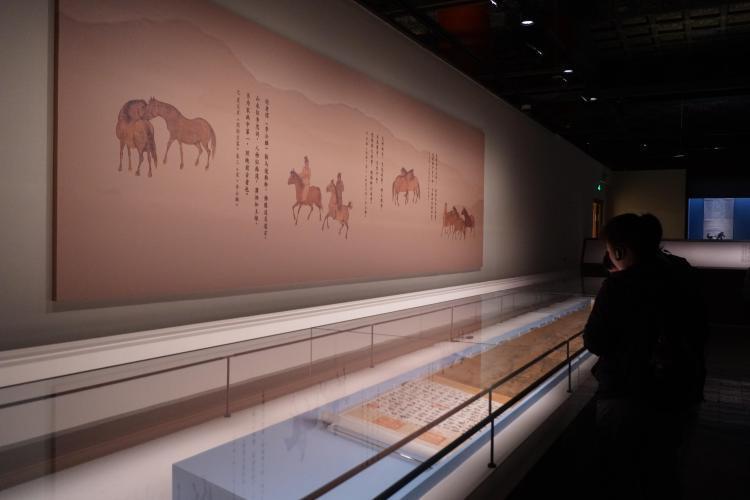 r据介绍,此次展览分为“行游”“牧放”“武功”“神骏”四个单元,展品包括国家一级文物20件,首次展出文物28件。重点展品包括唐人(传)《百马图》、(北宋)李公麟《摹韦偃牧放图》、(金)赵霖《昭陵六骏图》、(元)赵孟頫《人骑图》、(元)任仁发《出圉图》、(清)郎世宁《阚虎骝图》等历代画马名作。